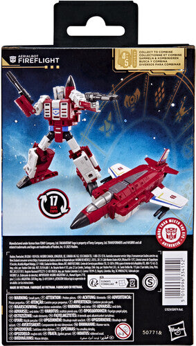 The 5.5-inch (14 cm) figure converts from robot action figure to jet mode in 17 steps. Combine the Aerialbot Fireflight figure with other Transformers Aerialbot action figures (each sold separately, subject to availability) to create the Aerialbot Superion action figure! With intricate poseability and attachable blaster accessories, this Aerialbot Fireflight action figure makes an awesome addition to any collection.