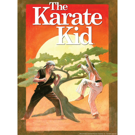 Icon Heroes presents The Karate Kid 1000-piece jigsaw puzzle! Stimulate the mind with this fun activity alone or with friends and family! Featuring beautiful artwork by Lee Kohse, this puzzle features Daniel Larusso vs. Johnny Lawrence and measures 20" wide x 27" tall.