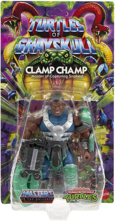 This MOTU Origins Turtles of Grayskull Clamp Champ action figure represents an exciting overlap of the worlds of Masters of the Universe and Teenage Mutant Ninja Turtles as they find themselves in the Reptile Wars!