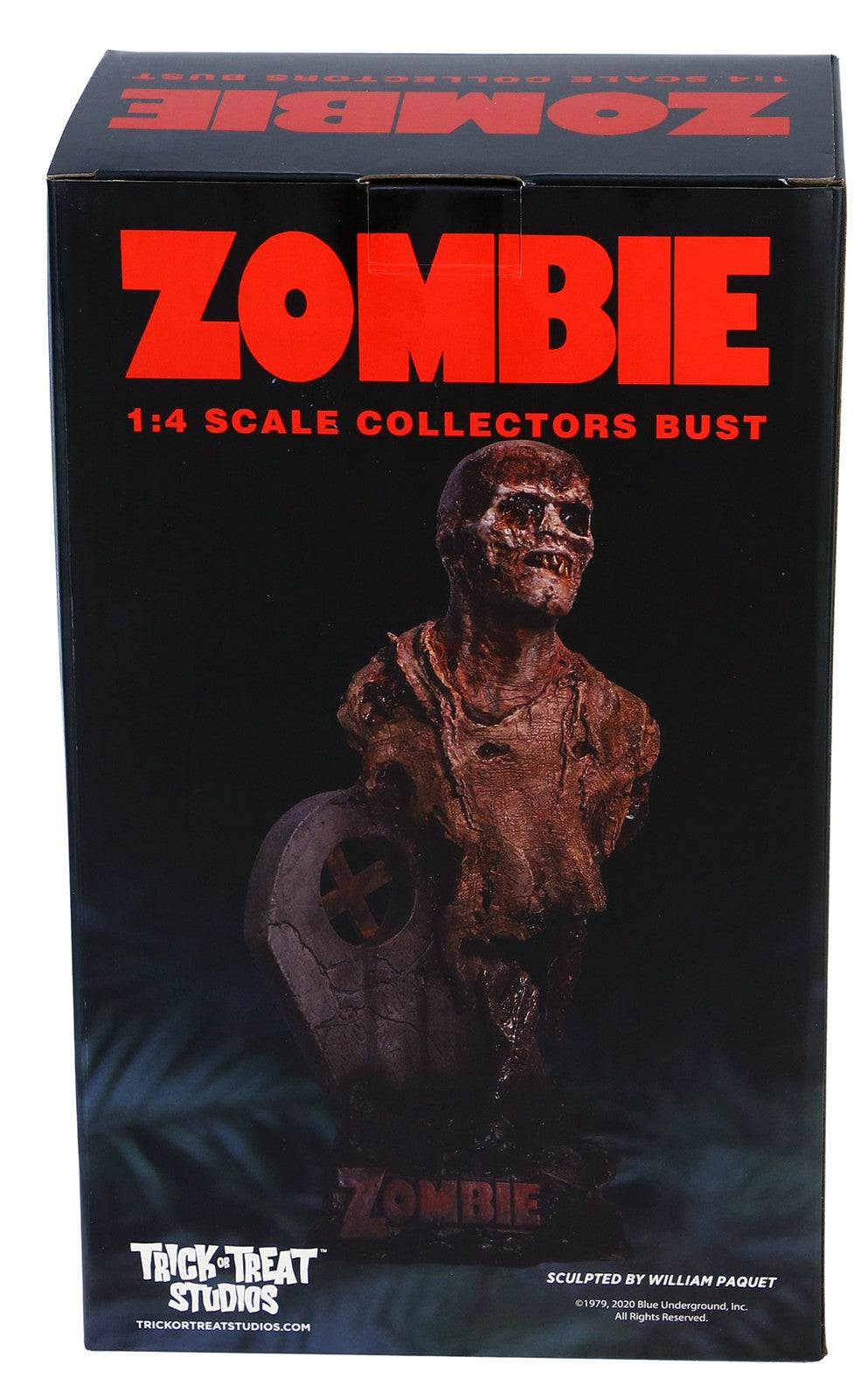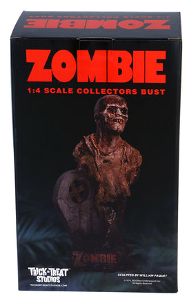 Trick or Treat Studios is proud to present the officially licensed, Fulci Zombie - Poster Zombie Bust. From Lucio Fulci's Classic Zombie trilogy, Zombie, the Poster Zombie is an icon of Italian Zombie Cinema. Sculpted with every detail represented, this resin bust is meticulously painted to perfection. Arrives in a beautiful collector's window box.